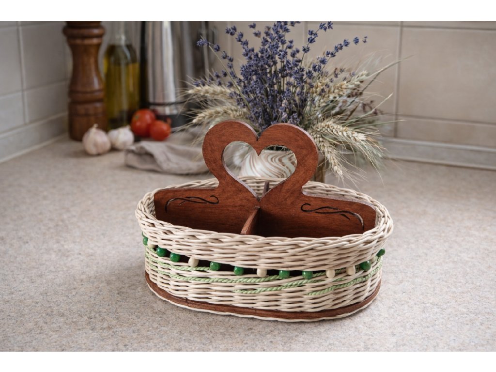 Košík je z pevného materiálu a díky svému kompaktnímu designu šetří místo na kuchyňské lince či stole.