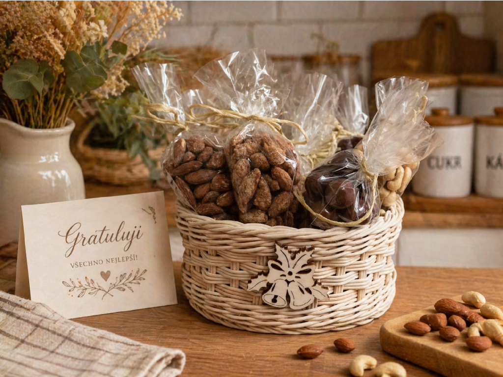 Dárkový košík, který promění obyčejnou návštěvu v něco výjimečného.Stačí naplnit dobrotami – a máš hotovo.